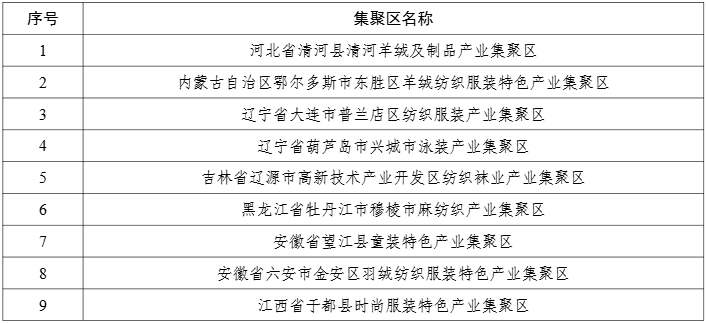 工信部发布《2025年度纺织服装特色产业集聚区重点培育名单(第一批)》公示名单