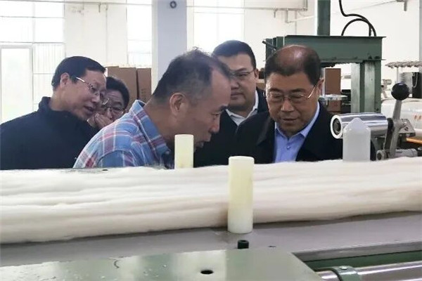 创业起步于清河县的“张氏羊绒”在业界闻名遐迩,历经40年的开拓进取,不仅在清河及周边地区产业扩大,而且在新疆、西藏、上海等地建有公司,形成了山羊绒、羊绒纱、羊绒面料、羊绒衫等原料收购、生产经营、产品销售全产业链,其中无毛绒业务市场占有率居行业前列,系国内各大羊绒企业主要供应商。来到“张氏羊绒”旗下的河北清竹羊绒制品有限公司,公司董事长张百诺向郝兰会一行介绍,这是一家建厂刚6年的新企业,占地100亩的一期工程已陆续投产,可年产山羊绒500余吨,产值超4亿元;山羊绒条200余吨,产值近2亿元;羊绒衫生产设备100台(套),年产60万件。郝兰会鼓励张百诺要把企业继续做大做强,加强品牌建设,引领行业发展。