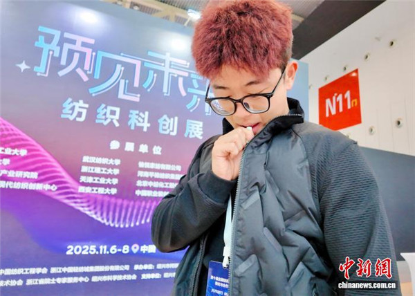 11月5日,武汉纺织大学基于纤维材料的交叉学科研究团队研发的热湿舒适智能调节聚酯纤维服装,目前已经投入市场。中新社记者 张斌 摄
