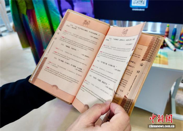 11月5日,借助数字喷墨印花工艺技术生产的丝绸版《论语》。中新社记者 张斌 摄