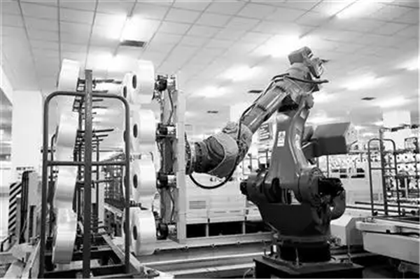 江苏恒力化纤股份有限公司的工厂车间内,机械臂正在进行精准操作。 受访单位供图