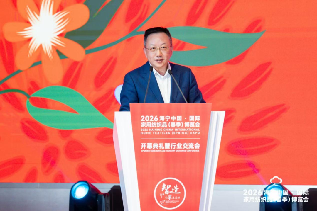 在与会领导嘉宾的共同见证下,2026海宁中国·国际家用纺织品(春季)博览会正式启动。